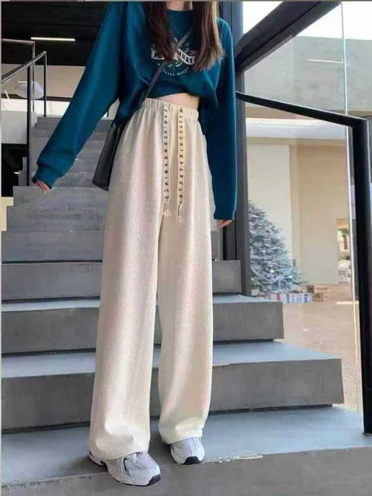 3360条泡芙裤女冰丝薄款宽松阔腿裤垂感棋盘格裤子,3...