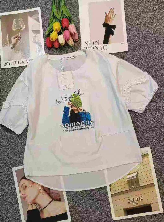 简约通勤设计感印花泡泡袖T恤,[爱心]405件左右,码数L-4XL,穿90-150斤,(轻微染色,黄点,有的没有,)懒得挑了,便宜处理,不介意的来