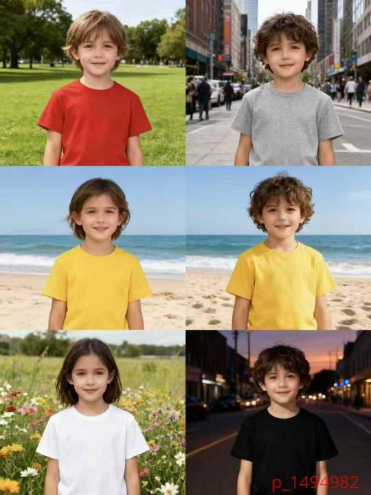 纯棉童装短袖T恤,数量6330件,尺码110--160,有十几个颜色,后领包边到肩,没包边的有111件,十件一包装,有码数清单,大货干净整洁 _@_@