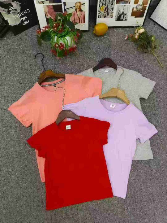 纯棉童装短袖T恤,数量6330件,尺码110--160,有十几个颜色,后领包边到肩,没包边的有111件,十件一包装,有码数清单,大货干净整洁