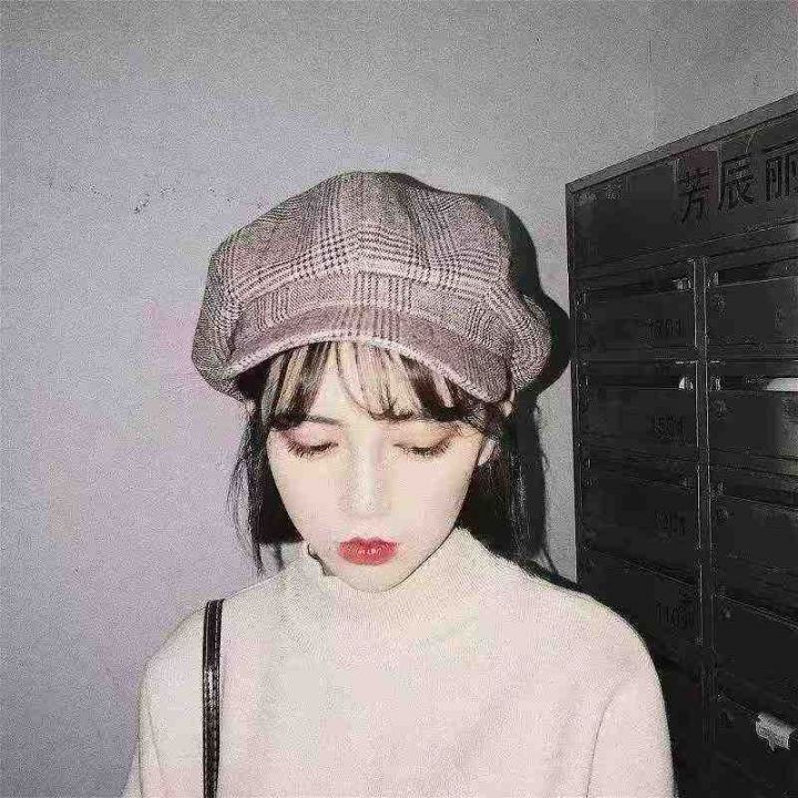 ️全清1.5 鸭舌帽韩版英伦复古格子帽,休闲画家帽秋...