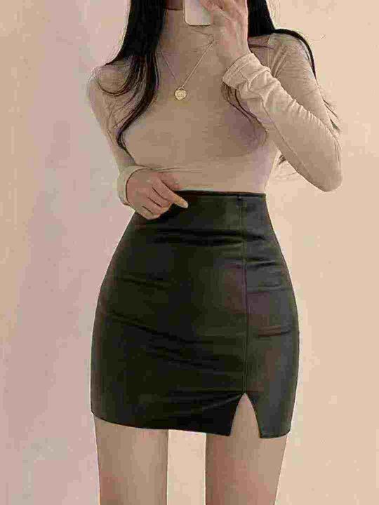 ️全清4.9 淘宝下架女装高腰皮裙,开叉半身裙女,夏季显瘦遮肚子a字包臀裙,小整带杂,一共95条