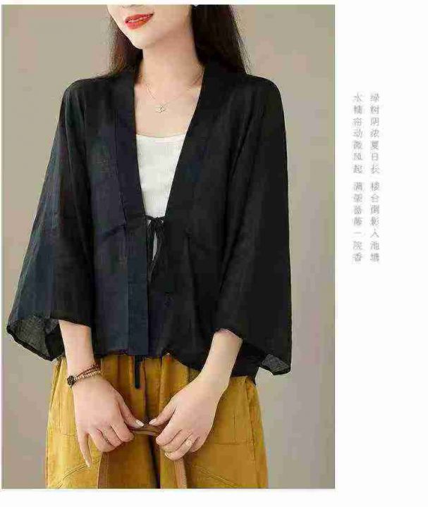 全清价5.9夏季文艺大码宽松蝙蝠袖苎麻开衫轻薄短外套...