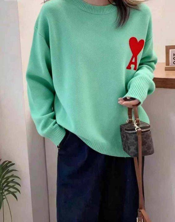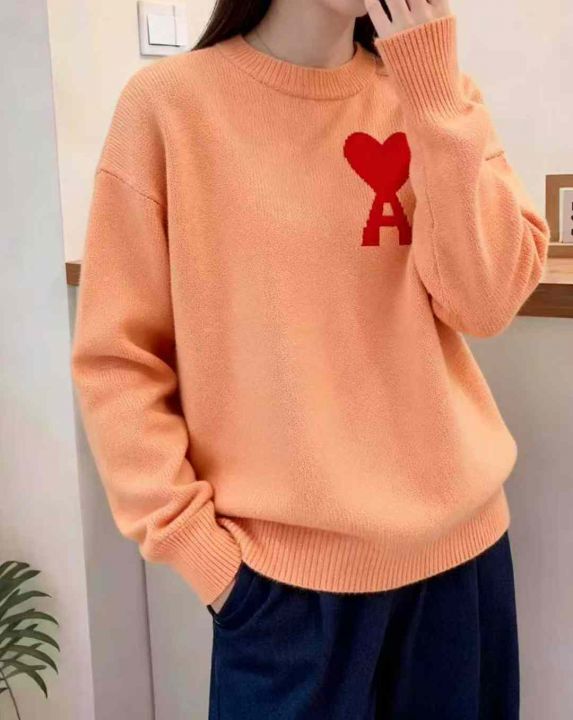 秋冬新款宽松慵懒风爱心提花圆领套头毛衣,独立包装,...