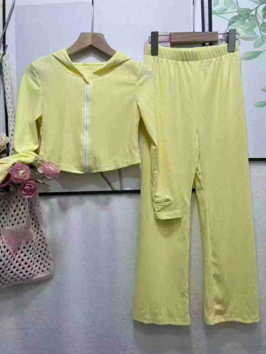 44 套[红包] 2025 秋装新款洋气女大童时髦连帽卫衣➕阔腿裤春秋两件套,套装,软拉链独立包装,码数 8Y—12Y =110—150,全清 8.5