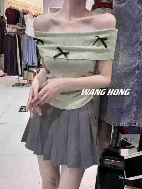 法式别致一字肩气质蝴蝶结收腰显瘦针织短袖,品质很好...