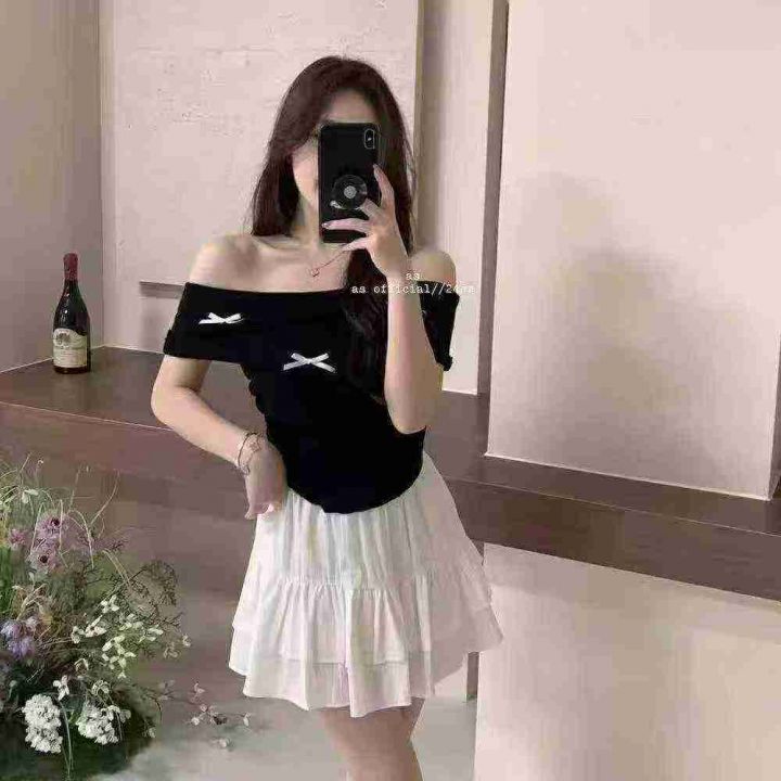 法式别致一字肩气质蝴蝶结收腰显瘦针织短袖,品质很好,独立包装,均码,1450件左右,清6.9,分➕1