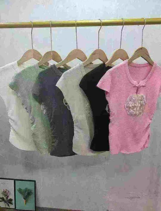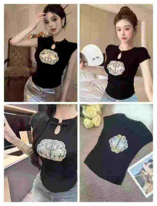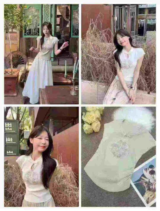 新中式国风甜辣妹小飞袖别致绝美针织短袖,品质很好,独立包装,均码,1450件,清6.9,分➕1