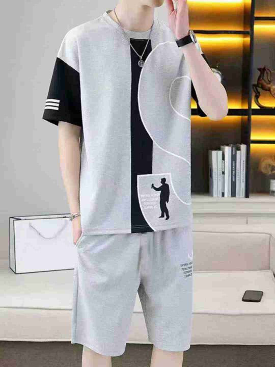 男士夏季两件套运动休闲套装帅气
