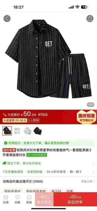 清货价9.8,数量160套左右轻熟风男士夏季两件套衬衣套...