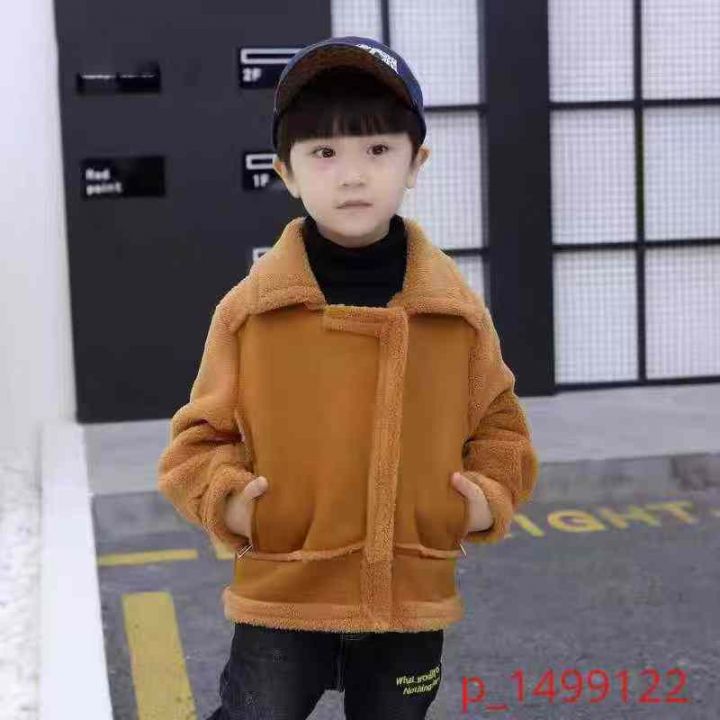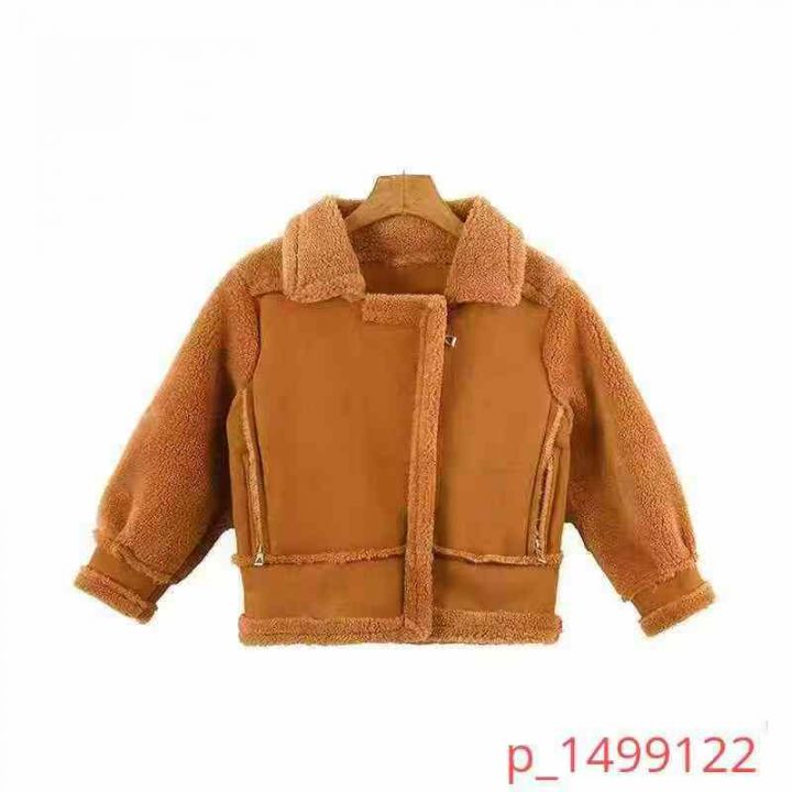 130件秋冬童装鹿皮绒皮毛一体翻领拉链外套 单款单色,码数5-7-9-11-13码,独立包装。 _@_@