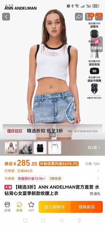 514 件[红包]ANN ANDELMAN官方直营同款品质,水钻 logo 背心上衣,专柜品质,整款两色,原软拉链独立包装,码数 Xs S M,全清 4.5