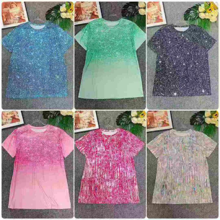电商仓回收858件外贸印花色彩大码宽松短袖T恤衫女,码数S-XXL。面料柔软有弹性,色彩丰富多样,适合外贸进出口,全部独立包装。分货+0.5