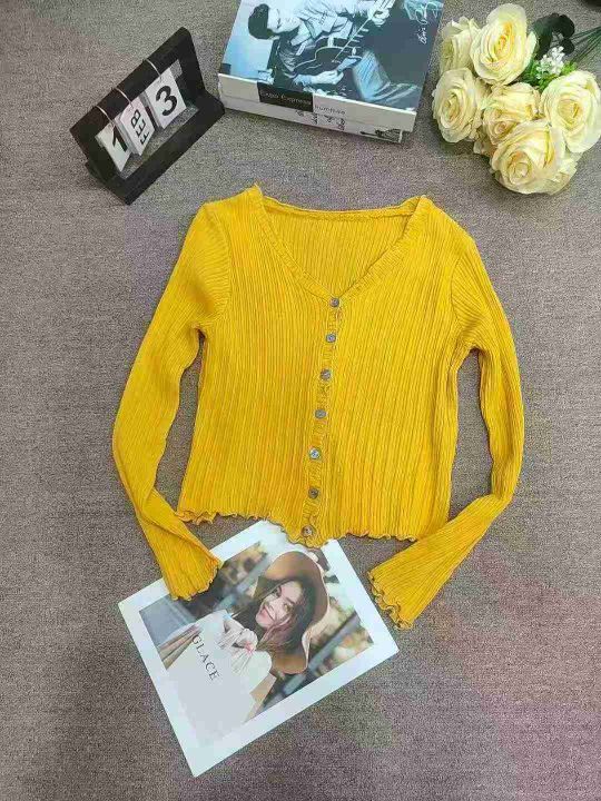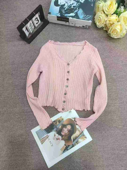 2025新款韩版百搭木耳边短款长袖针织开衫外套,独立包装,五个颜色,830件左右,清7.8,分➕1