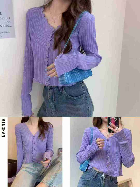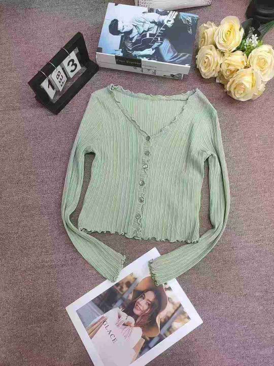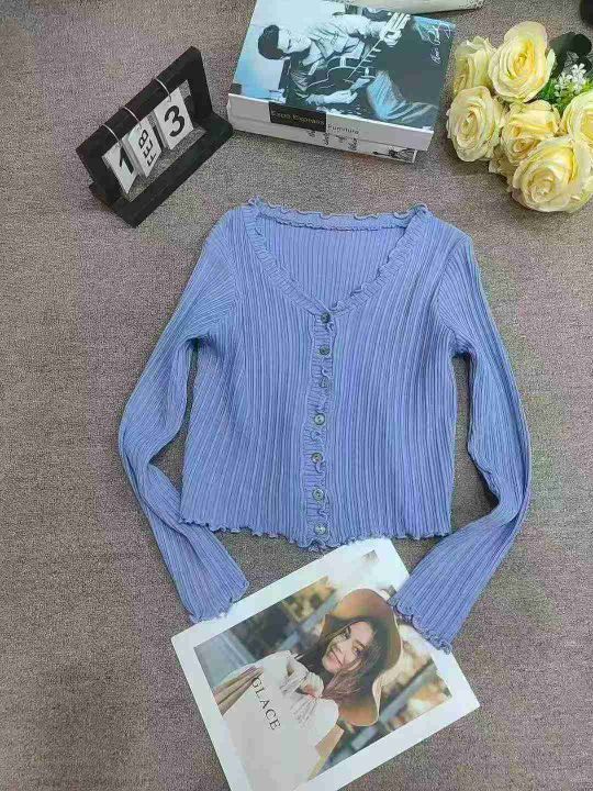 2025新款韩版百搭木耳边短款长袖针织开衫外套,独立包装,五个颜色,830件左右,清7.8,分➕1