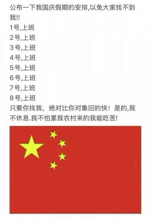 国庆节不要去打扰我的同行 他们要旅游 要回老家 请不...