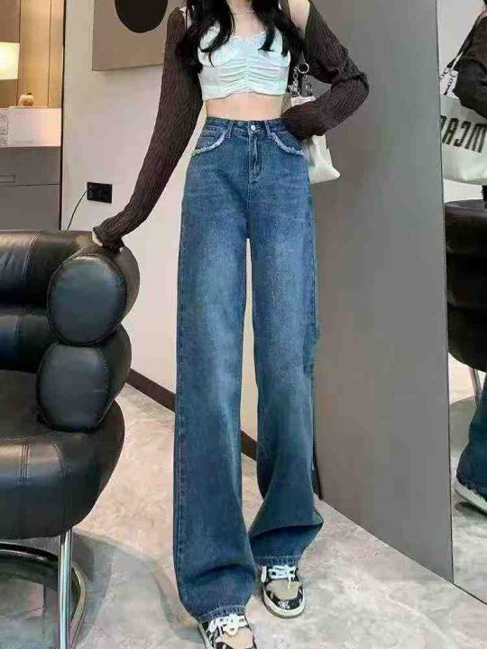 ☕️秋款直筒牛仔裤女高腰宽松显瘦窄版阔腿裤 167条全...
