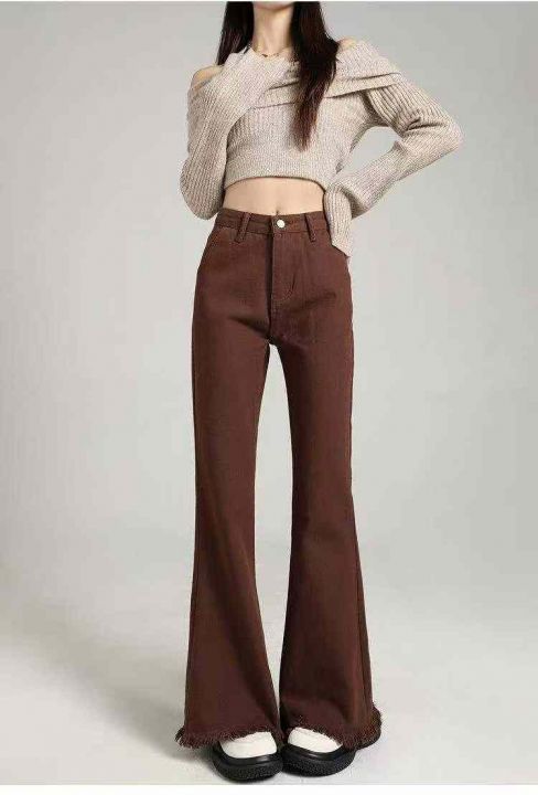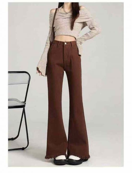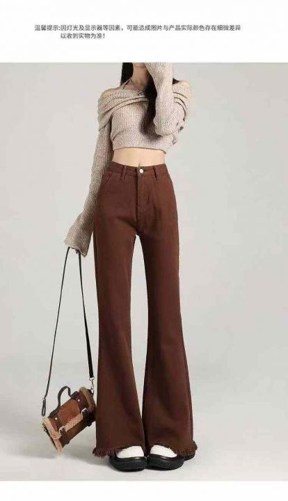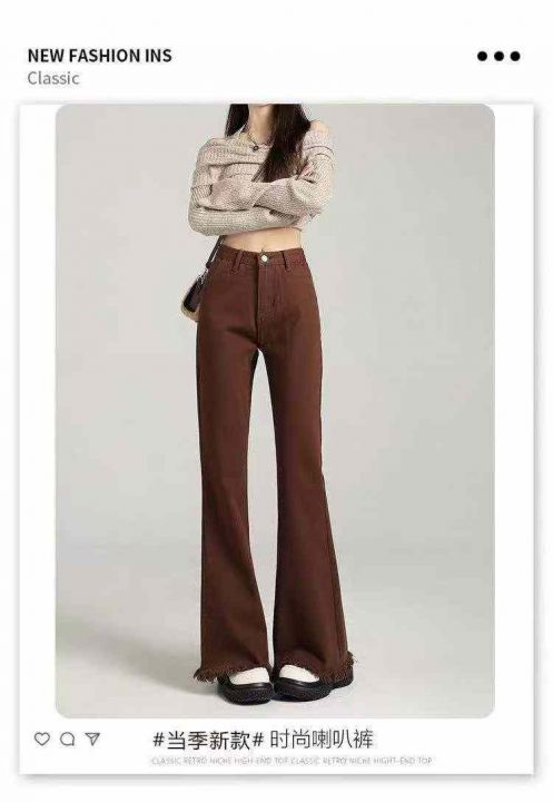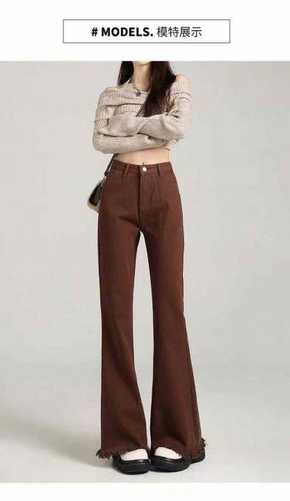 ☕️高弹力咖啡色微喇牛仔裤女新款高腰显瘦喇叭裤垂感...
