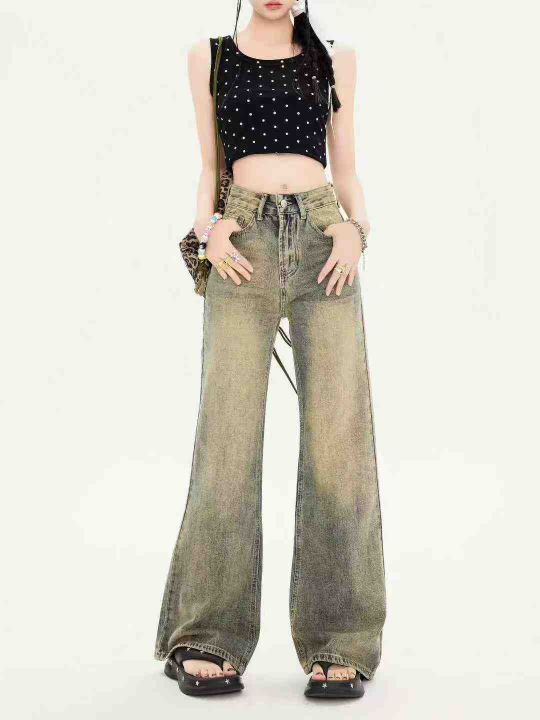 高品质☕️美式复古水洗做旧宽松版阔腿裤百搭新款宽松...
