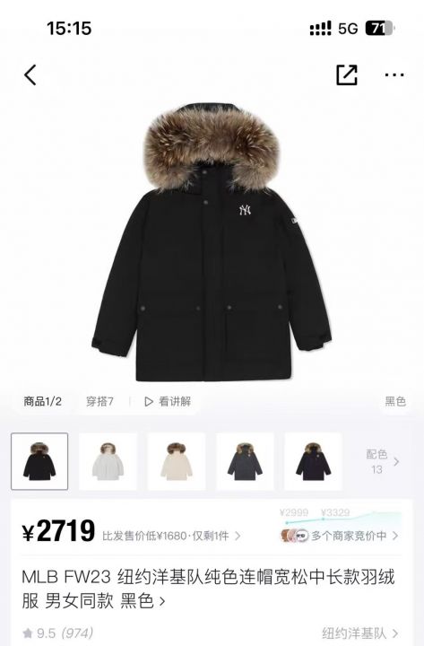 Mlb羽绒有200件真毛领的