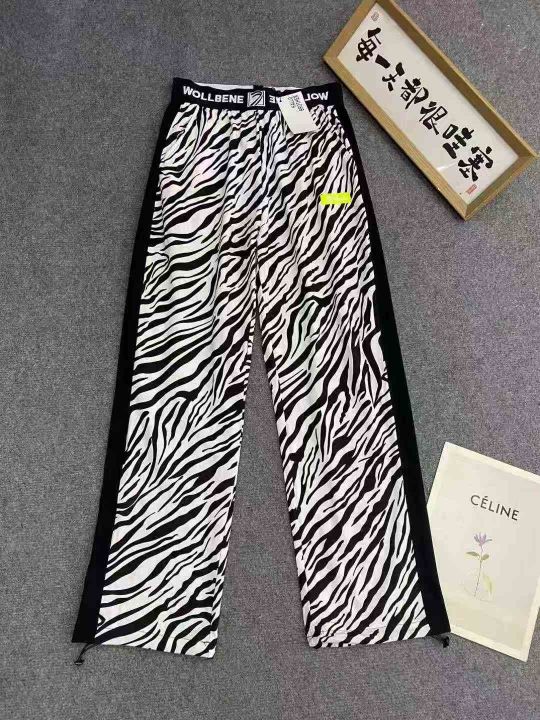 纯棉斑马纹长裤599件8.5,面料舒适透气,松紧腰,有口袋,小标装饰,版型正...