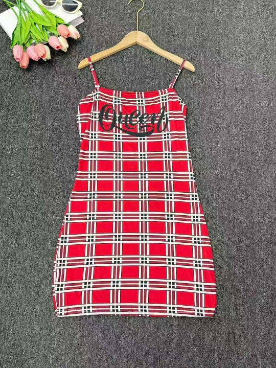 欧美风新款复古红格子高腰修身吊带裙短裙连衣裙,独立包装,250件,S-XL,全清5.5