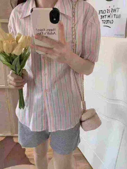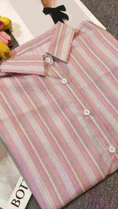 多巴胺粉色条纹温柔别致百搭衬衫,[爱心]110件左右,码数S-XL,穿80-140斤,万佳档口货,原包装️无瑕疵,[666]实体店品质,分货加一