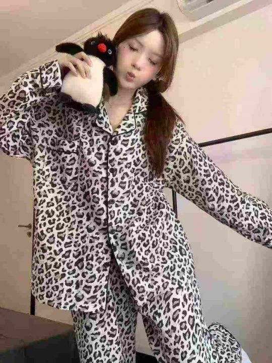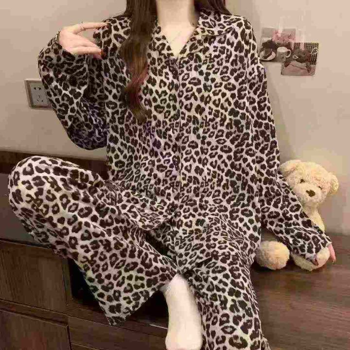 ☕️网红豹纹整款睡衣女春秋季款长袖长裤新款可外穿套...