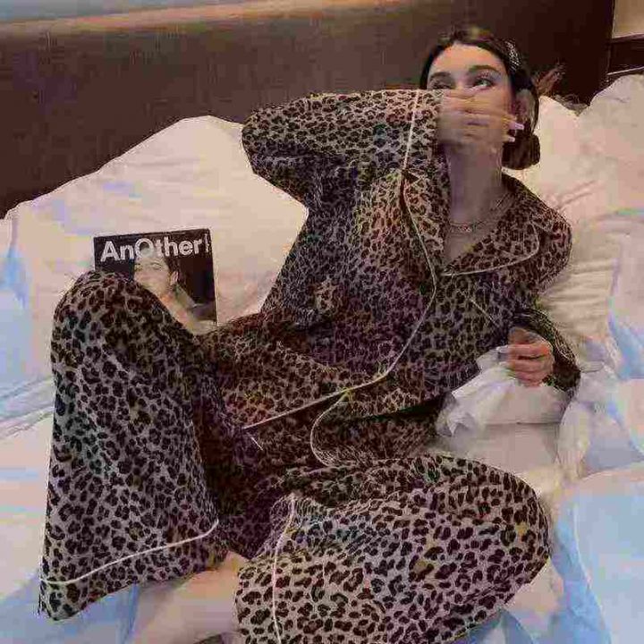 ☕️网红豹纹整款睡衣女春秋季款长袖长裤新款可外穿套...