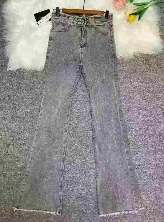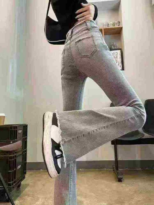 烟灰色高腰微喇叭牛仔裤女2025年夏季新款毛边马蹄喇叭显瘦长裤子110件,独立拉链袋包装,尺码S~3XL ,实体店质量,全清福利价12.8元