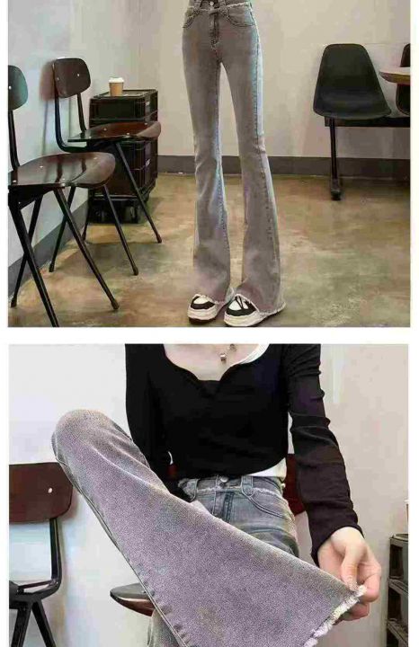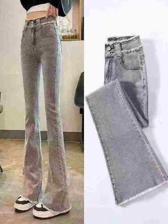 烟灰色高腰微喇叭牛仔裤女2025年夏季新款毛边马蹄喇叭显瘦长裤子110件,独立拉链袋包装,尺码S~3XL ,实体店质量,全清福利价12.8元