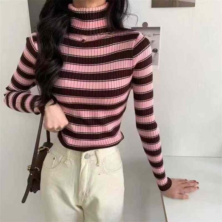 冬季新款堆堆领撞色条纹针织套头毛衣,独立包装,均码面料软糯厚实弹力大,160件,全清7.9元超低价秒杀!