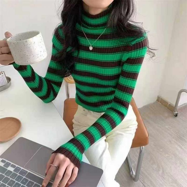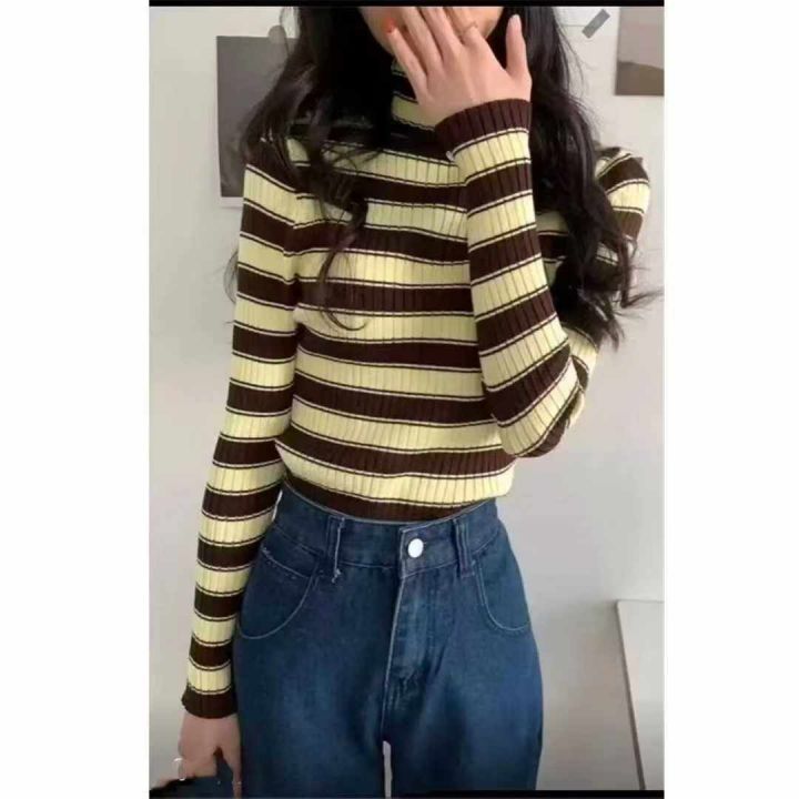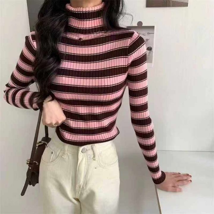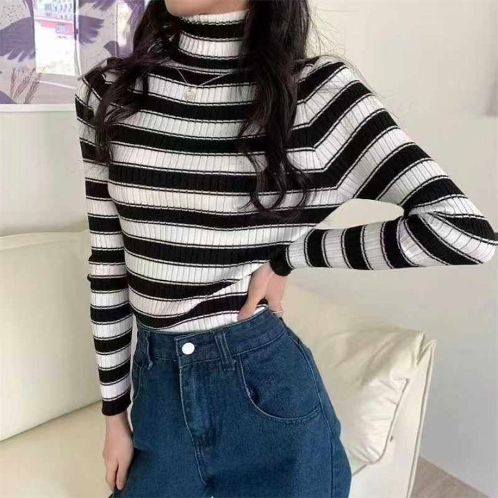 冬季新款堆堆领撞色条纹针织套头毛衣,独立包装,均码面料软糯厚实弹力大,160件,全清7.9元超低价秒杀!