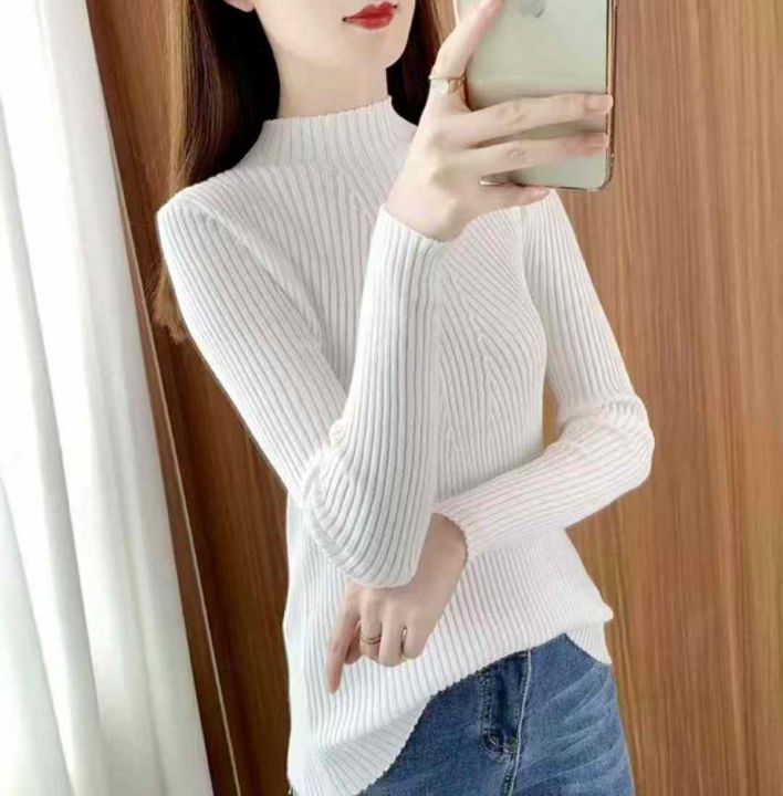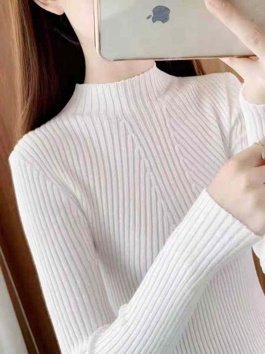 秋冬新款半高领弹力修身显瘦包芯纱套头毛衣,独立包装...