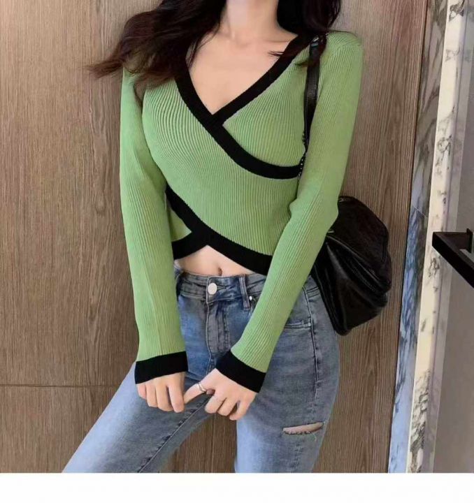 早秋季新款洋气交叉辣妹设计感小众长袖针织套头毛衣,独立包装,均码面料柔软舒适弹力大,940件,全清5.9元超低价秒杀!分货加一!