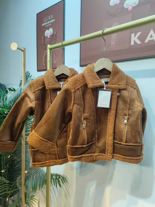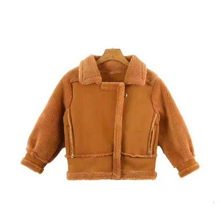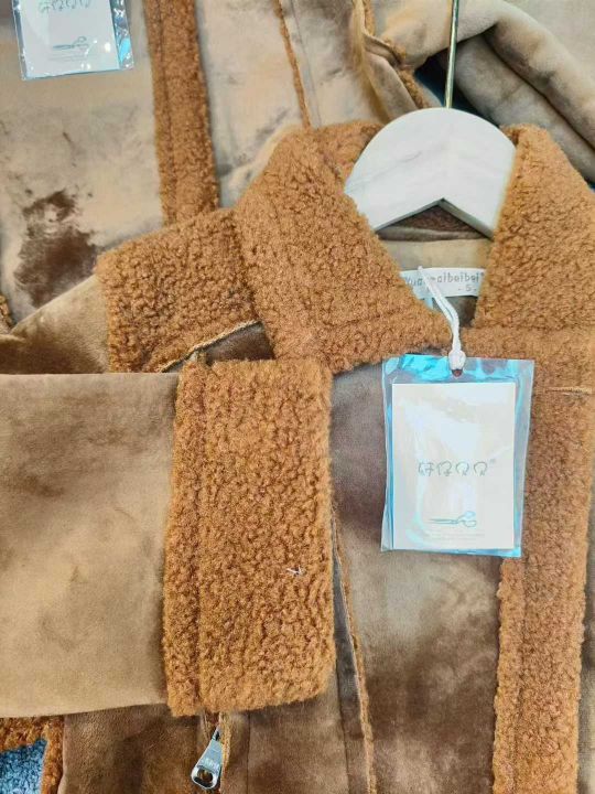 130件秋冬童装鹿皮绒皮毛一体翻领拉链外套 单款单色,码数5-7-9-11-13码,独立包装。
