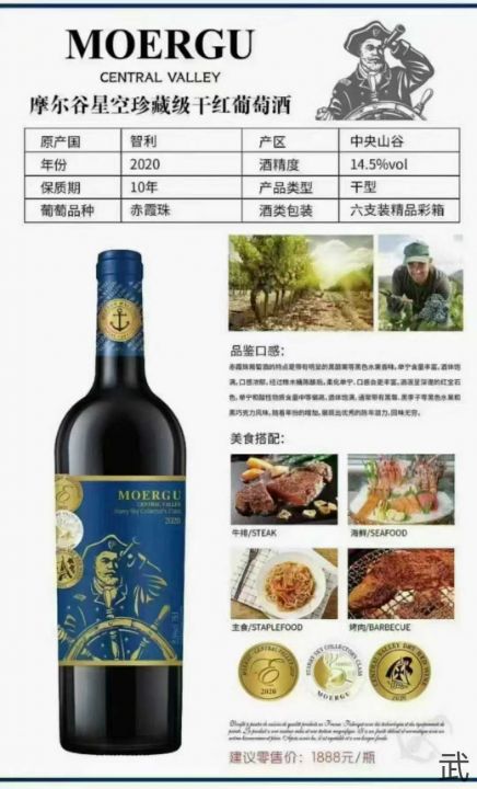 摩尔谷星空红酒,躺箱,22年9月,14.5度,中央山谷...