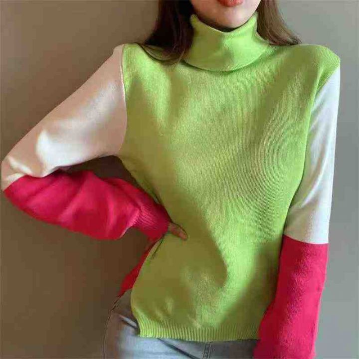 秋冬新款半高领宽松拼色显瘦长袖内搭时尚针织衫,独立...