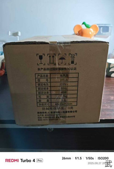 出厂原箱,高度75~90Cm,三档风速,可摇头,可调节上下仰角,线长1米3,2根扇插……