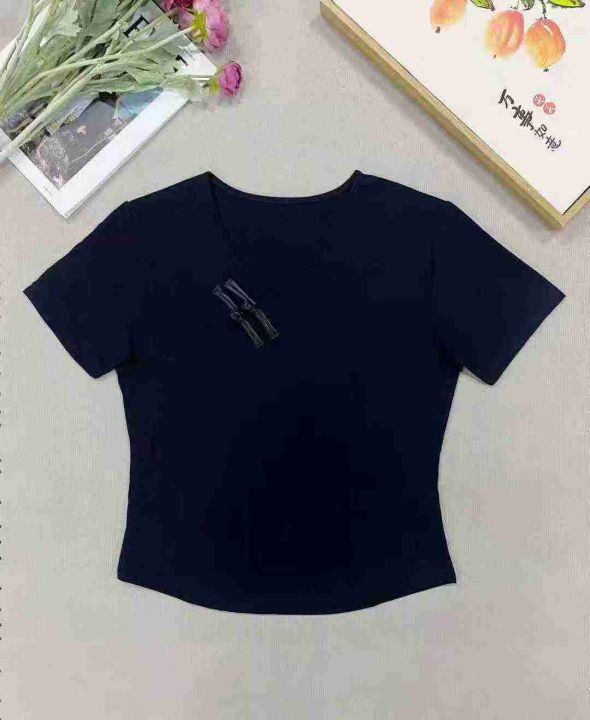 1625件国风重工刺绣中式盘扣拉架棉短袖T恤女,以黑色...