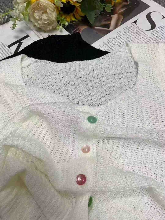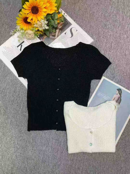 秋季新品韩系小香风针织短袖开衫,独立包装,均码面料...