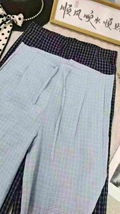纯棉格子阔腿裤,清8.8码数S—L,数量50件,全部独立...