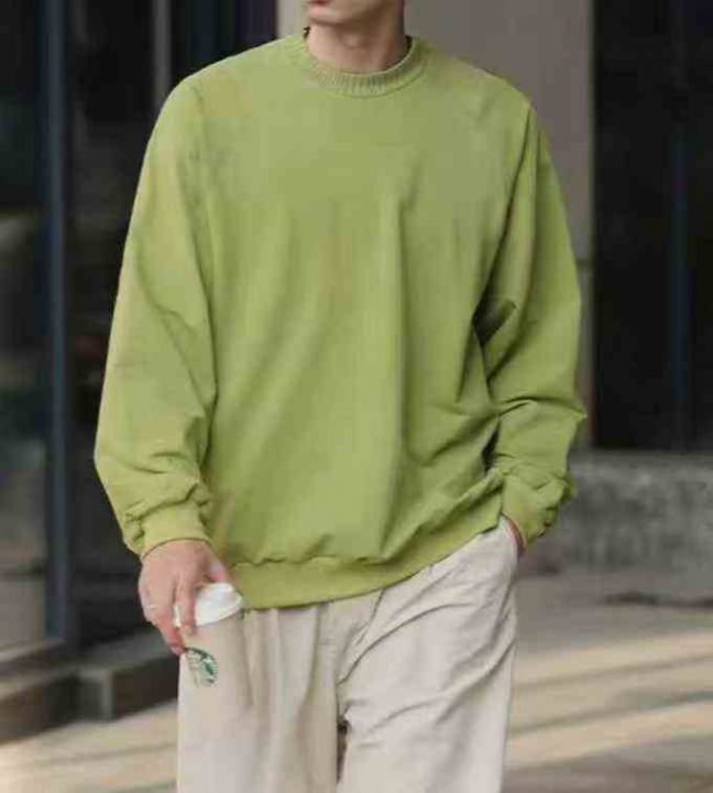 ☆5.9元,大码秋冬宽松圆领光板卫衣,仿棉复合面料,后领包边,苹果绿和咖...