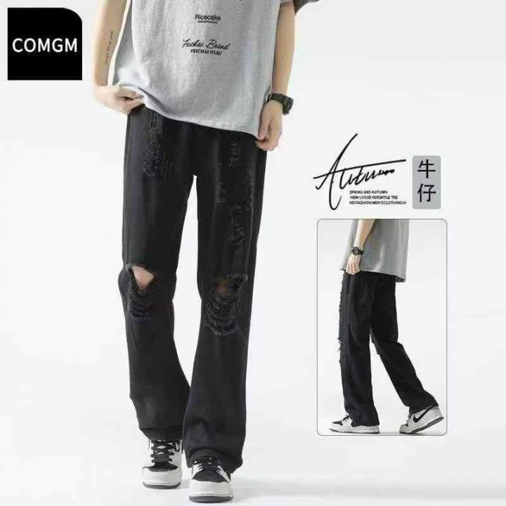 秋季新品洗水棉男士宽松直筒阔腿松紧腰牛仔长裤,独立...