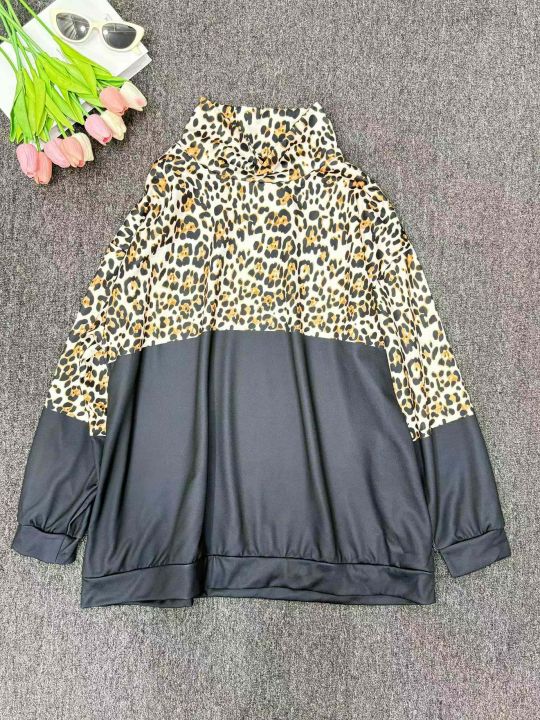 欧美跨境新款女装长袖豹纹拼接套头卫衣,独立包装,2XL-5XL,400件,全清3.9
