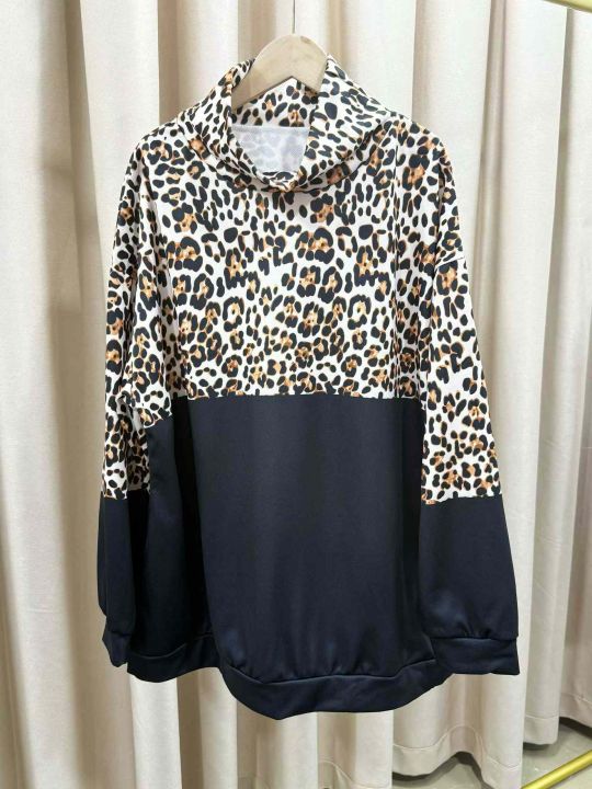 欧美跨境新款女装长袖豹纹拼接套头卫衣,独立包装,2XL-5XL,400件,全清3.9