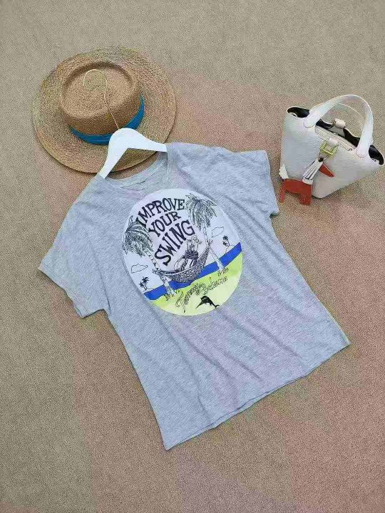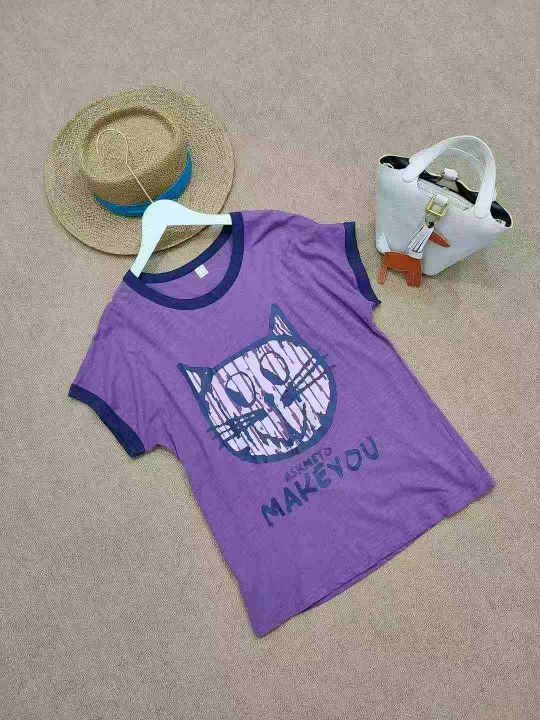 [月亮]:6.9清337件[月亮]:字母猫咪休闲竹节纯棉T恤[...