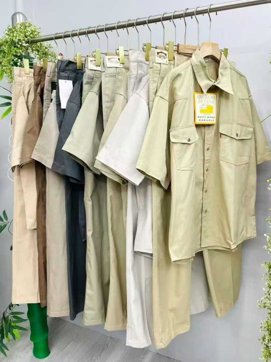 工装短袖衬衫套装男,数量:330套,码数:L-XL,有独立包装,14.9元清