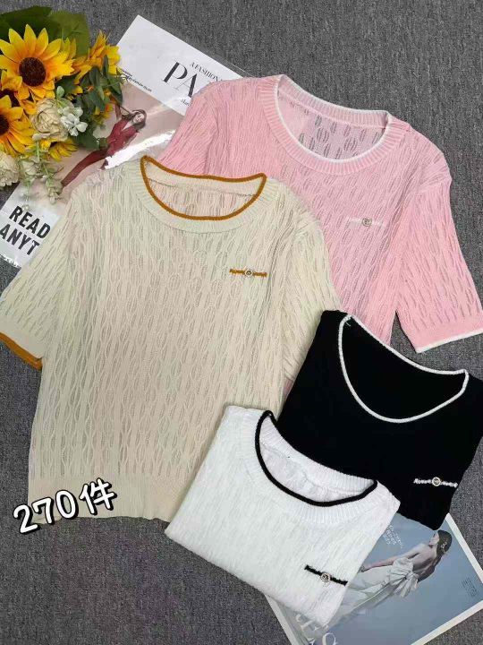 夏季新款气质宽松百搭冰丝针织短袖T桖,独立包装,均...