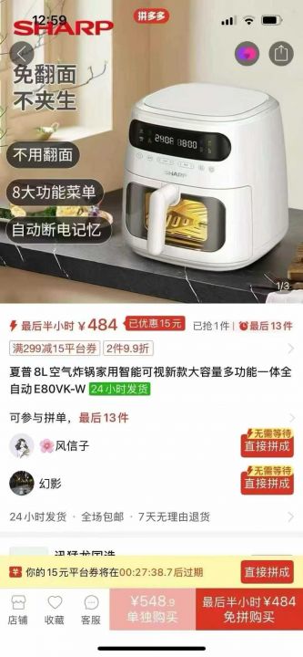 X 夏普8升可视空气炸锅,质量非常好,现货6000台,支...